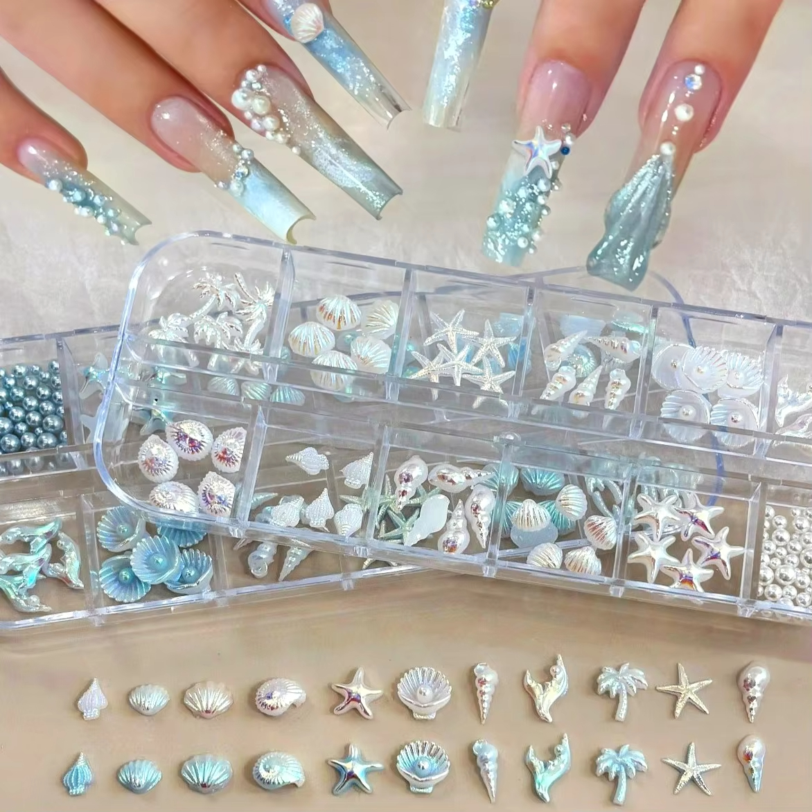 12 Grids Starfish Shell Nail Art Accessories