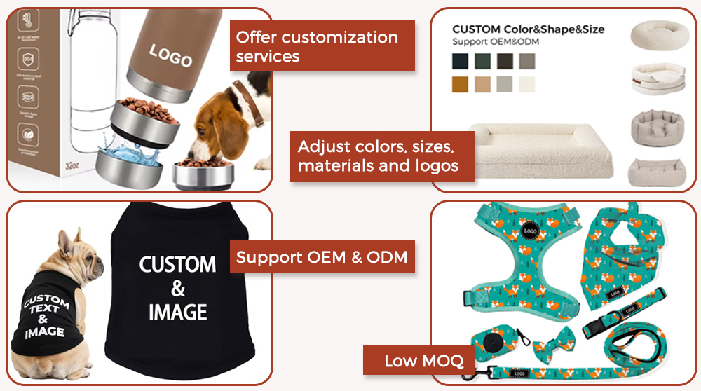 From food bowls and water utensils, seasonal clothing to comfortable bedding and travel equipment... Almost all pet supplies can be customized according to your needs.