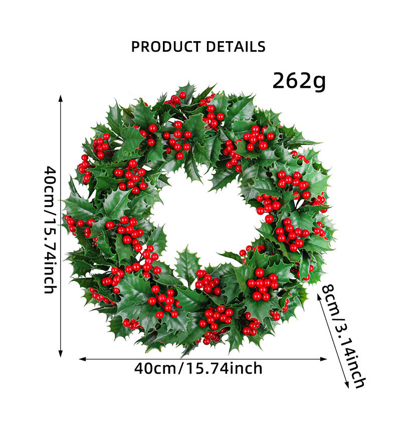 Christmas Green Leaves and Red Fruit Wreath