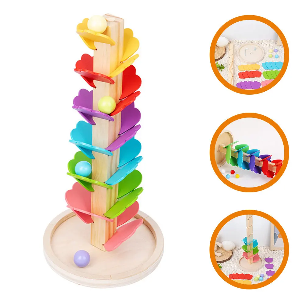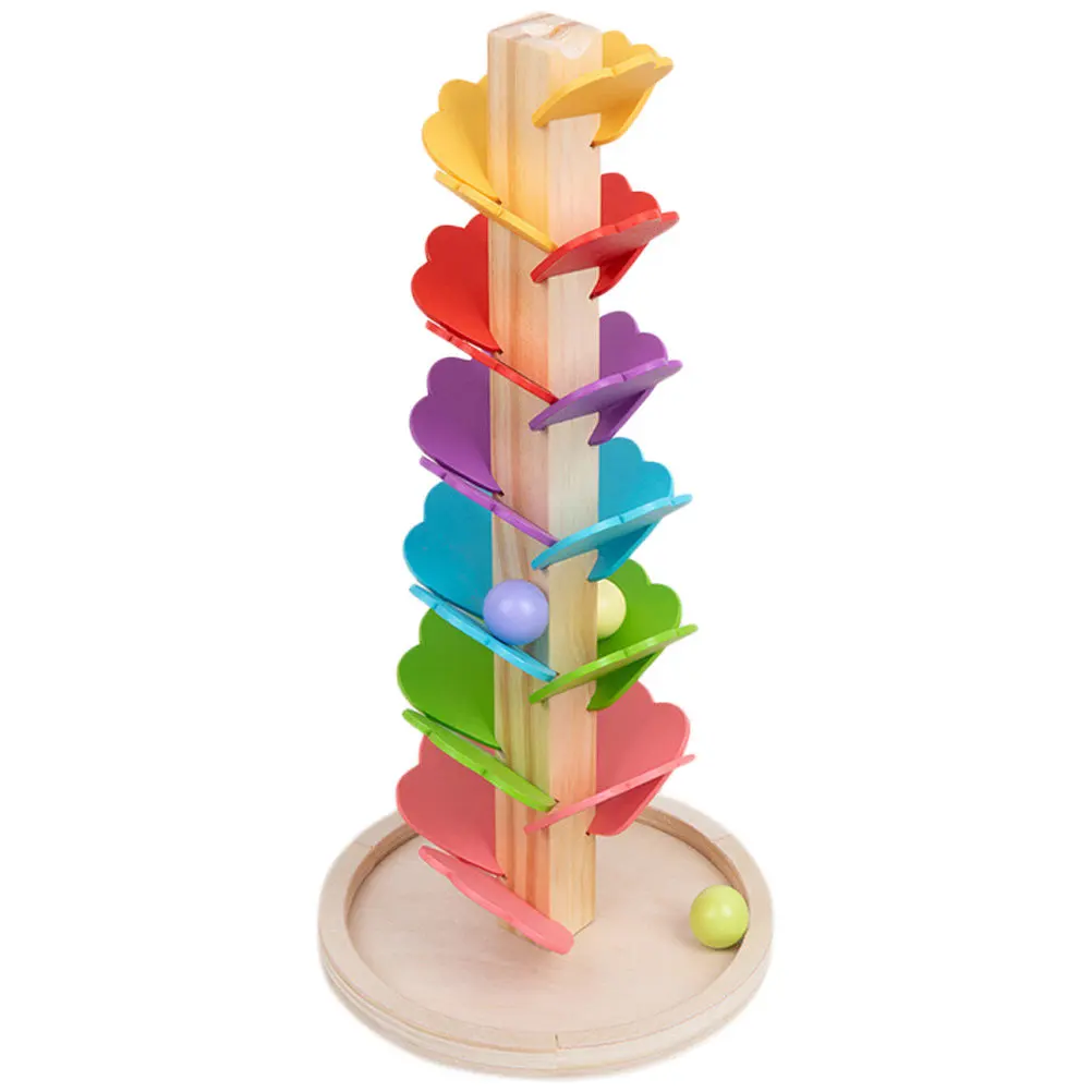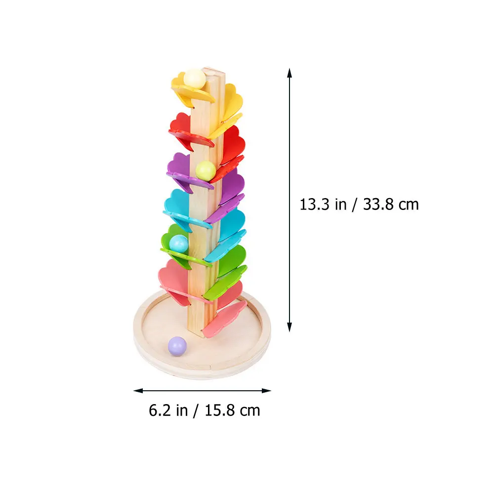 The ball drop toy is made of practical and sturdy wood material for durable and safe to use. rainbow musical tree