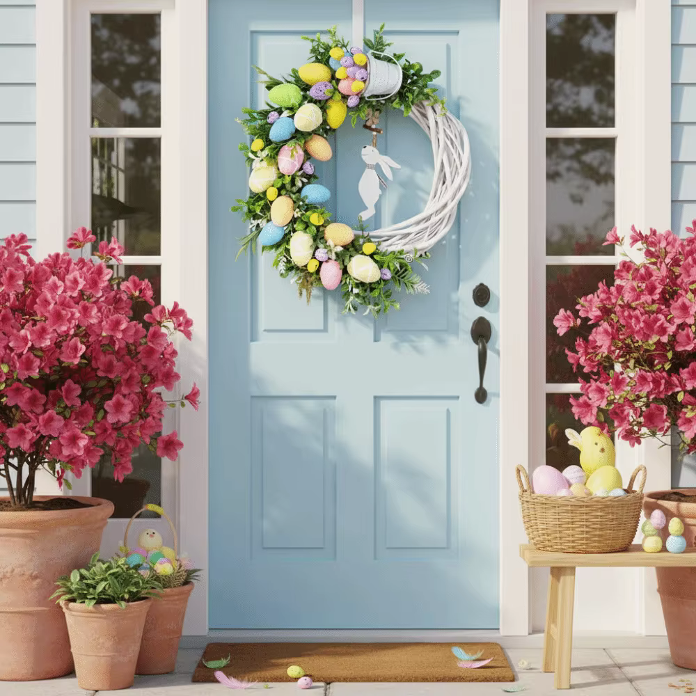 Rattan Ring Easter Bunny Wreath