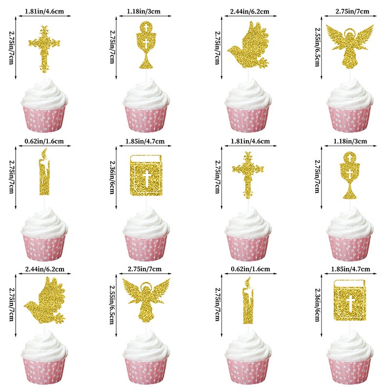 12pcs/Bag Cake Topper for Baptism Party