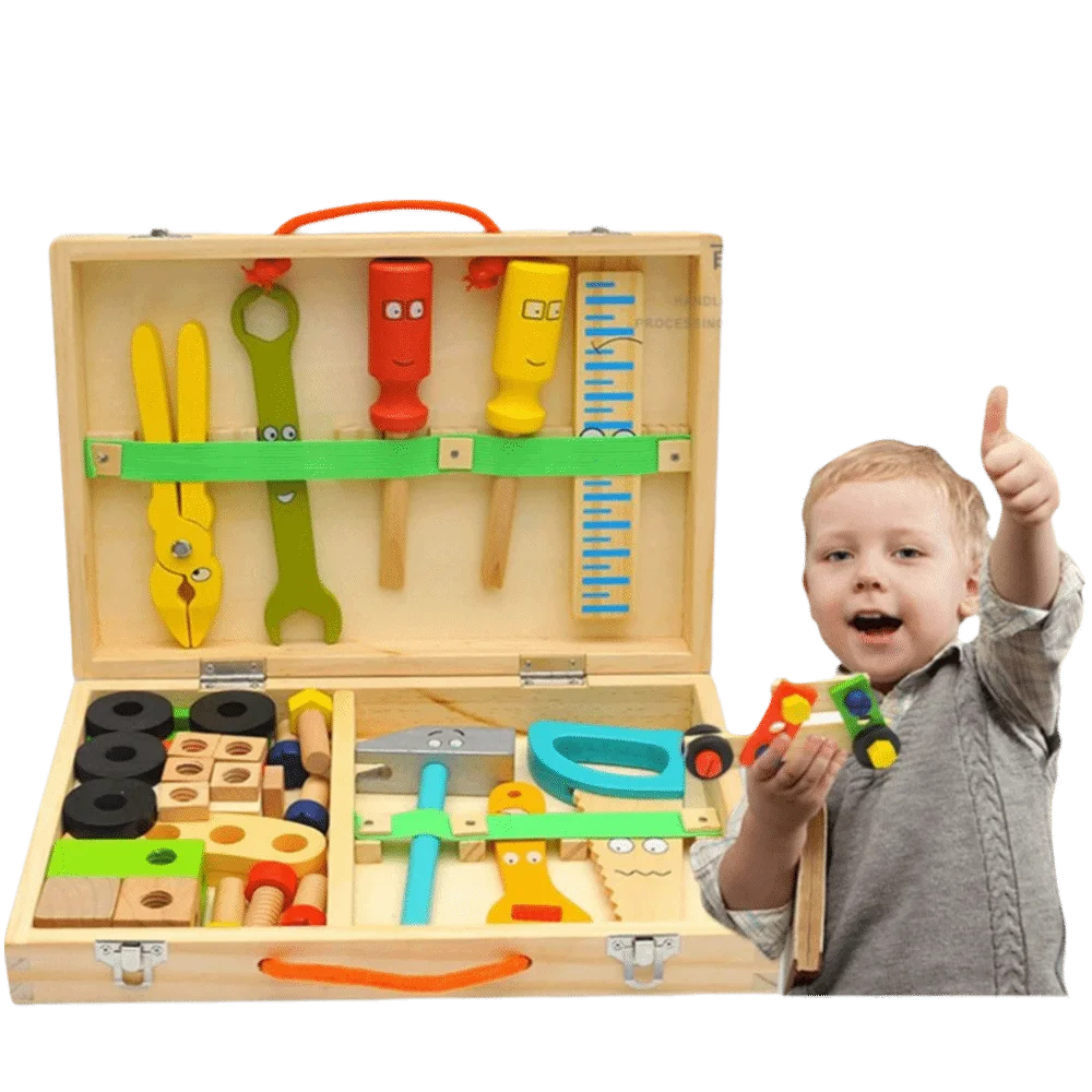 Kids Cartoon Wooden Toolbox Toy
