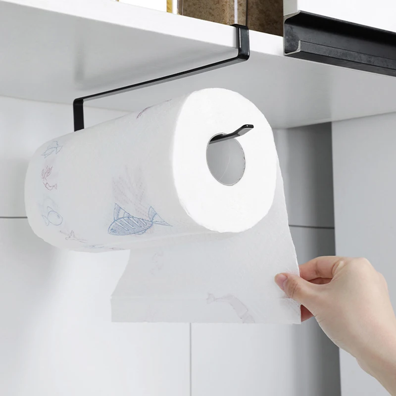 2.Damage free:Quick installation without drilling.Fits perfectly on your cabinets without drilling any holes in the cabinet door.This paper towel holder can go under the cabinet and the shelf or hang on the cabinet door.
